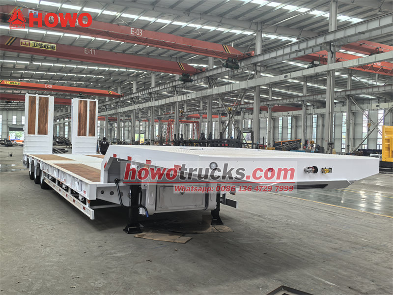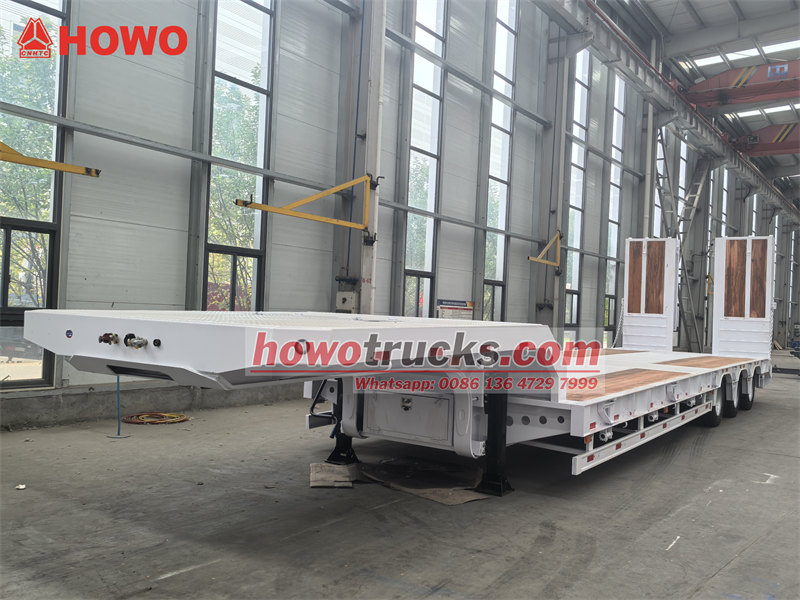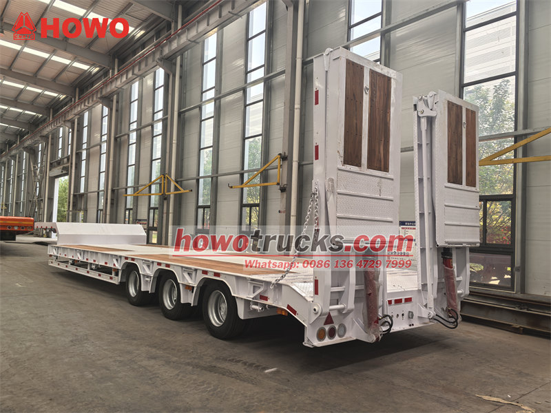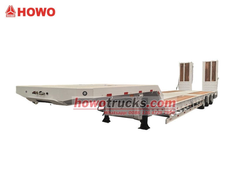 45 тонналық 3 осьті төмен платформалы тіркеме - ірі техника мен жабдықтарды тасымалдауға арналған көлік құралы. Ол 50# JOST бесінші доңғалақ муфтасымен және алдыңғы осьті көтеру құрылғысы бар пневматикалық аспа жүйесімен жабдықталған, үш 13 тонналық өздігінен басқарылатын осьтермен жабдықталған. Тіркеме жүргізу қауіпсіздігін қамтамасыз ету үшін WABCO EBS тежеу жүйесімен орнатылған. Арнайы жасалған гидравликалық пандустар мен платформа арнайы ағаш еденмен қапталған, бұл тайғанауға қарсы тамаша қорғанысты қамтамасыз етеді. Дәстүрлі модельдермен салыстырғанда, оның өздігінен басқарылатын осьтері шиналардың тозуын тиімді түрде азайтады, ал пневматикалық аспаны көтеру функциясы жүктеменің өтуін жақсартады. Ағаш палуба үйкеліске төзімділікті азайтуға көмектеседі және тиеу-түсіру тиімділігін жақсартады.