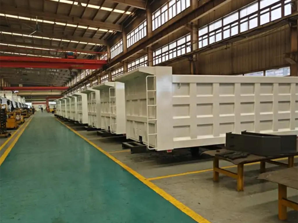 ●Жоғары беріктіктегі болат корпусымен және күшейтілген төсемімен жабдықталған, ол ауыр материалдарды тасымалдау талаптарын көтере алады. Гидравликалық жүйе төсемнің тез еңкейуіне мүмкіндік береді, бұл материалдың тез түсірілуін қамтамасыз етеді және жұмыс тиімділігін айтарлықтай жақсартады.