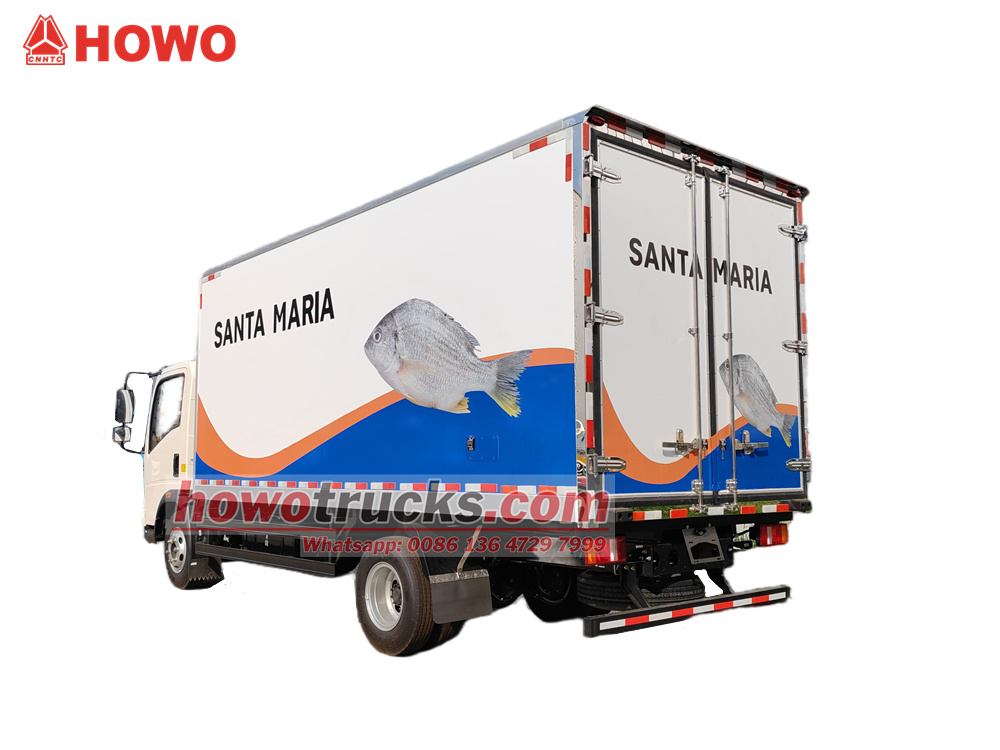 HOWO 4x2 тоңазытқыш жүк көлігі HOWO жеңіл жүк көлігінің шассиін пайдаланады, доңғалақ базасы 3360 мм. Cummins ISF3.8s4R154 154 ат күші қозғалтқышымен және WLY6TS55 6 жылдамдықты беріліс қорабымен жабдықталған. Жоғарғы тоңазытқыш қорабының өлшемі 4200×2200×2050 мм және шыны талшықтан, FRP + PU көбік + FRP 105 мм панель материалынан жасалған, толығымен жабық сэндвич панель, оң жақ есік, толық өлшемді қос артқы есік, таймайтын және тозуға төзімді еден және HX-580 тоңазытқыш блогын пайдаланады. Қорап 5 тонна жүкті тасымалдай алады және негізінен теңіз өнімдерін суық тізбекпен тасымалдау үшін қолданылады.