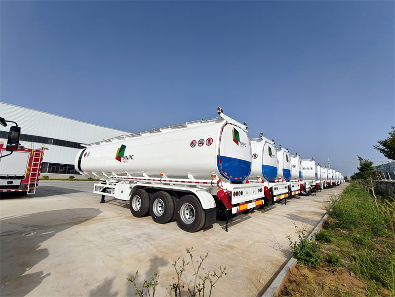 Жаңа 3 осьті 40000 л Отын багының тіркемесі Q370R материалынан жасалған, жобалық қысымы 1,61 МПа және корпусы мен ұшының қалыңдығы 8,0 мм, бұл ең жаңа өндіріс стандарттарына сәйкес келеді. Ол тасымалдау кезінде қауіпсіздікті қамтамасыз ету үшін әртүрлі қауіпсіздік клапандарымен, сұйықтық деңгейінің көрсеткіштерімен, қысым көрсеткіштерімен және басқа да компоненттермен жабдықталған. Сонымен қатар, ол әртүрлі ортада және жол жағдайында тасымалдау қажеттіліктерін қанағаттандыра алатын BPW көпірлерімен, JOST тарту түйреуіштерімен, JOST аяқтарымен және басқа да конфигурациялармен жабдықталған. Бұл жоғары өнімді және жоғары қауіпсіздікті қамтамасыз ететін жылжымалы дизель отыны багының тіркемесі.