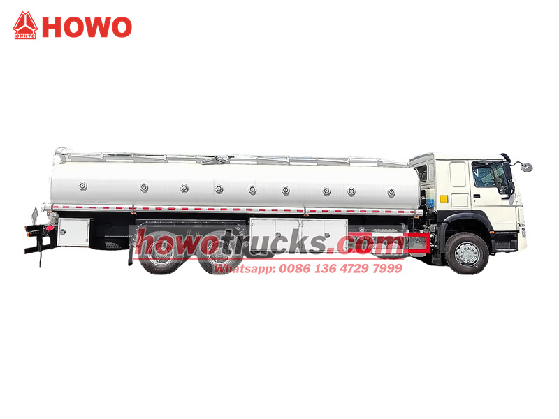 HOWO дизельді тасымалдау жүк көлігі - HOWO 6×4 ауыр жүк тасымалдауға арналған шасси негізінде жасалған кәсіби деңгейдегі цистерна. 18 000 литрлік көміртекті болаттан жасалған цистернамен жабдықталған ішкі бөлігі коррозияға қарсы жабынмен өңделген және тоғыз тәуелсіз бөлімге бөлінген, бұл мұнай өнімдерінің бірнеше түрін бір уақытта тасымалдауға мүмкіндік береді. Жоғарғы корпусы 60 м³/сағ жоғары ағынды отын сорғысымен, 4 дюймдік түсіру шлангімен, алюминийден жасалған тайғанауға қарсы жолмен және еуропалық стандартты қауіпсіздік құрылғыларымен жабдықталған, бұл тиімді тиеу/түсіру мүмкіндіктерін және кешенді қауіпсіздікті қорғау жүйесін қамтамасыз етеді. Ол мұнай-химия көлік саласы үшін кәсіби шешім ретінде қызмет етеді.