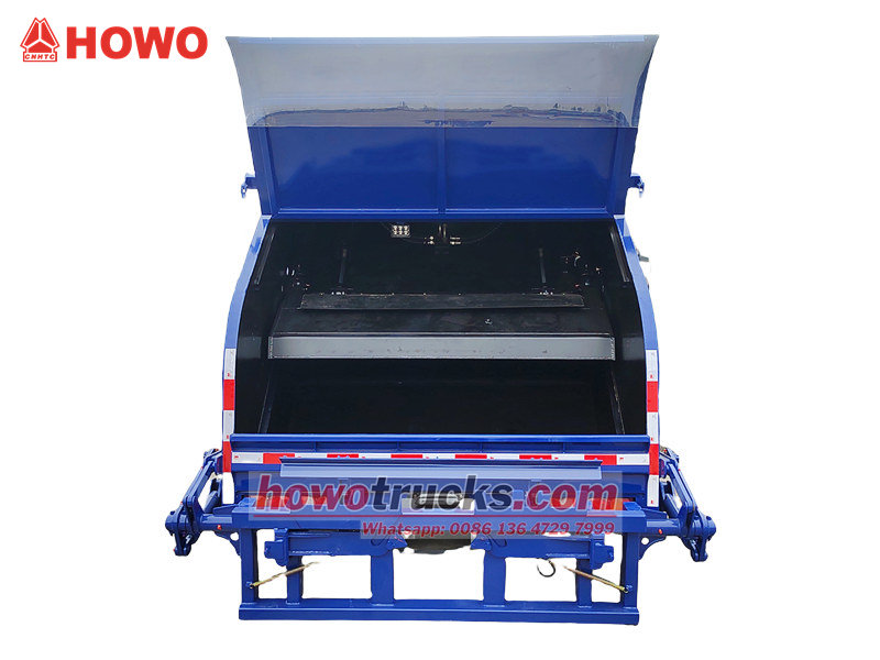 Қоқыс жәшігі жоғары беріктігі бар ауа райына төзімді болат пластинадан жасалған, бүйір панельдері бір бөліктен тұратын қалыптау процесін қолданады. Бөлім ағынды сулардың ағып кетуіне және иістердің таралуына жол бермейтін тамаша тығыздау өнімділігіне ие, бұл оны экологиялық таза және тиімді етеді. Howo артқы тығыздағыш қоқыс таситын машина қалаларда, тұрғын аудандарда, зауыттарда және басқа жерлерде тұрмыстық қалдықтарды орталықтандырылған жинау және тасымалдау үшін жарамды. Оны пайдалану оңай, қауіпсіз және сенімді.