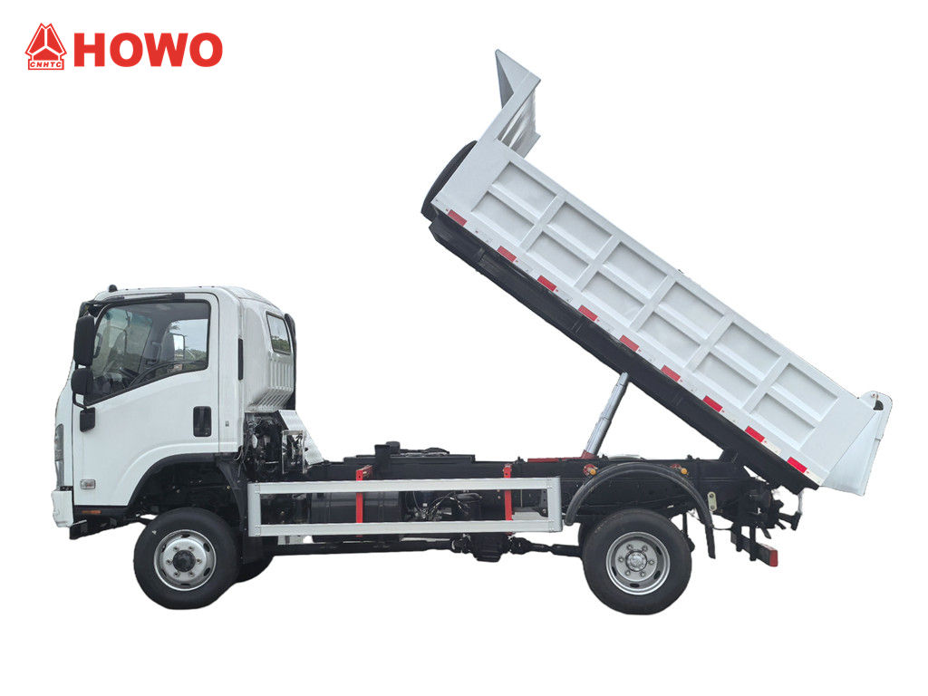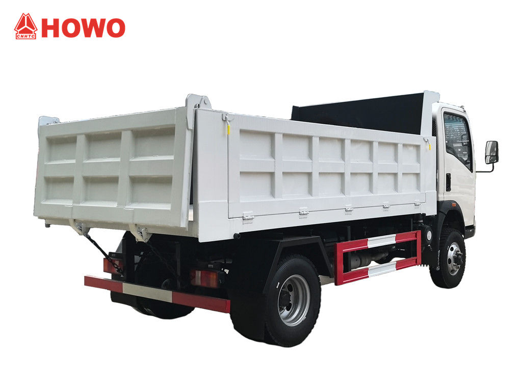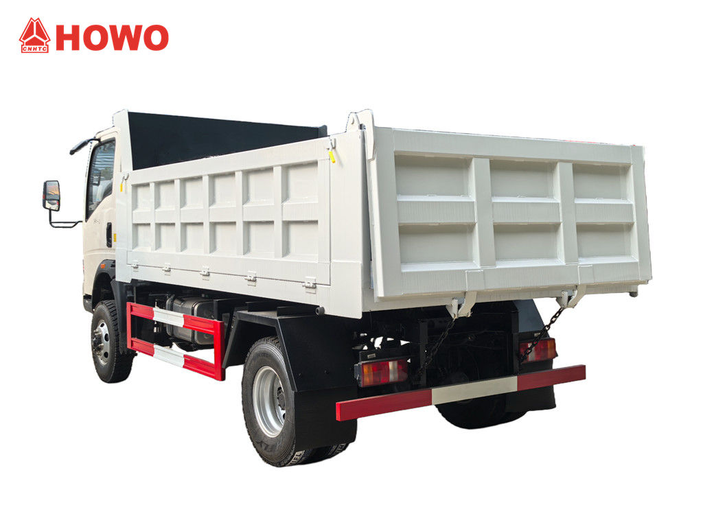 Howo 3 Ton жол талғамайтын мини-самосвалы HOWO жеңіл жүк көлігі 4x4 RHD шассиі негізінде модификацияланған, доңғалақ базасы 3360 мм, YN4102QBZL 116 ат күші бар дизельді қозғалтқышымен, WLY6TS55C-6 жылдамдықты беріліс қорабымен және үш бүйірі және төрт түбі бар көміртекті болаттан жасалған, 3550 × 2100 × 550 мм өлшемді, орталықтан көтергіш, тұрақты көтергіш, таза және жылдам түсіргіш, артқы есіктерді ашуға болады және көлік жүргізуші жағындағы басқару клапаны арқылы басқарылады, бұл басқаруды жеңілдетеді.