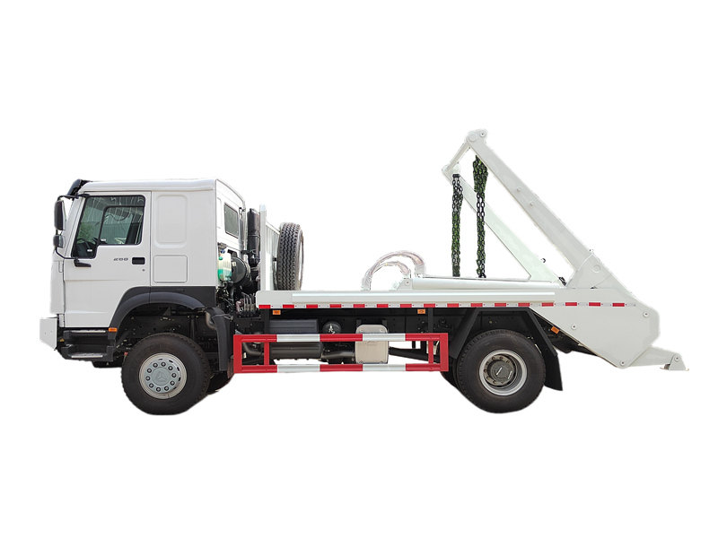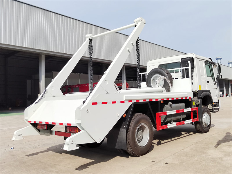 10000HOWO 4×4 жүк тиегіш қоқыс таситын машинасы – қоқыс контейнерлерін механикаландырылған тиеу және түсіру үшін айналмалы рычаг механизмін басқаратын гидравликалық жүйені пайдаланатын мамандандырылған санитарлық көлік. Ол Sinotruk 266 ат күші бар қозғалтқышымен жабдықталған және HOWO 10 беріліс қорабымен және жоғары беріктіктегі осьтермен жабдықталған HOWO 4×4 толық жетекті шассиге негізделген, бұл ауыр жүктемелер мен қиын жол жағдайларында да күшті жүк көтеру қабілеті мен сенімділігін қамтамасыз етеді. Қосалқы құрылым жоғары беріктіктегі болаттан жасалған, бұл берік және ұзақ мерзімді өнімділікті қамтамасыз етеді. Негізгі гидравликалық айналмалы рычаг жүйесі бірқалыпты және қуатты жұмыс істейді, көтеру қабілеті 6 тоннадан асады. Әрбір жұмыс циклі бір минуттан аз уақытты алады, бұл жоғары тиімділік пен уақытты үнемдеуді қамтамасыз етеді.