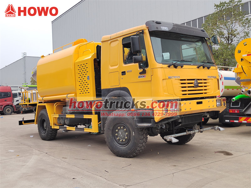 13000HOWO 4×4 су таситын жүк көлігі – берік HOWO 4×4 толық жетекті жол талғамайтын шассиіне негізделген жоғары өнімді, көп функциялы шаң басатын көлік, жол талғамайтын көліктер үшін ерекше мүмкіндіктерге ие. Ол STR құйылған алдыңғы рульдік жетек білігімен және ST16 артқы жетек білігімен, сондай-ақ кең доңғалақ базасының дизайнымен (2022/1830 мм) жабдықталған, бұл күрделі жерлерде тамаша тұрақтылықты қамтамасыз етеді. 300 ат күші бар WD615.97C қозғалтқышымен жұптастырылған 4×4 жетек жүйесі 1340 Н·м үлкен айналу моментін береді, бұл оған таулар мен шөлдер сияқты экстремалды орталарды оңай басқаруға мүмкіндік береді.