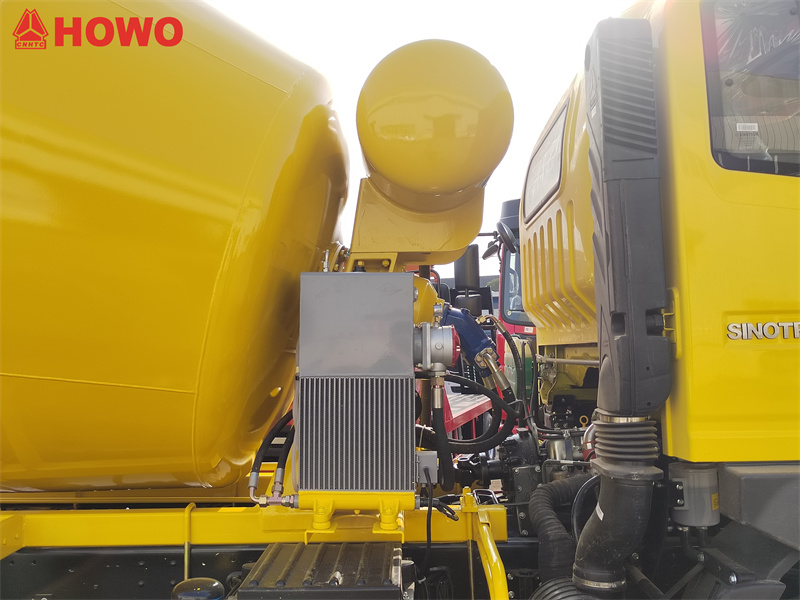 HOWO 5 текше метрлік бетон араластырғыш жүк көлігі жалпы салмағы 16 тонна және доңғалақ базасы 3800 мм болатын HOWO 2080 қатарлы және жартылай кабиналы көлікті пайдаланады. Ол SINOTRUK MC05.18-40 180 ат күші бар қозғалтқышымен және HW90510C 10 жылдамдықты беріліс қорабымен жабдықталған. Жоғарғы араластырғыш бактың сыйымдылығы 5 текше метр және Q355 марганец болаттан жасалған. Бак корпусы 4 мм, ал басы 6 мм. Ол редуктормен, гидравликалық сорғымен және қозғалтқышпен, радиатормен, ауа басқару қорабының жинағымен, сыйымдылығы 400 л су багымен, ауа қысымымен сумен жабдықтаумен, құйрықта екі жақты басқару тұтқаларымен, байланыстыру жұмысымен және төмен қалдық жылдамдығымен жабдықталған.
