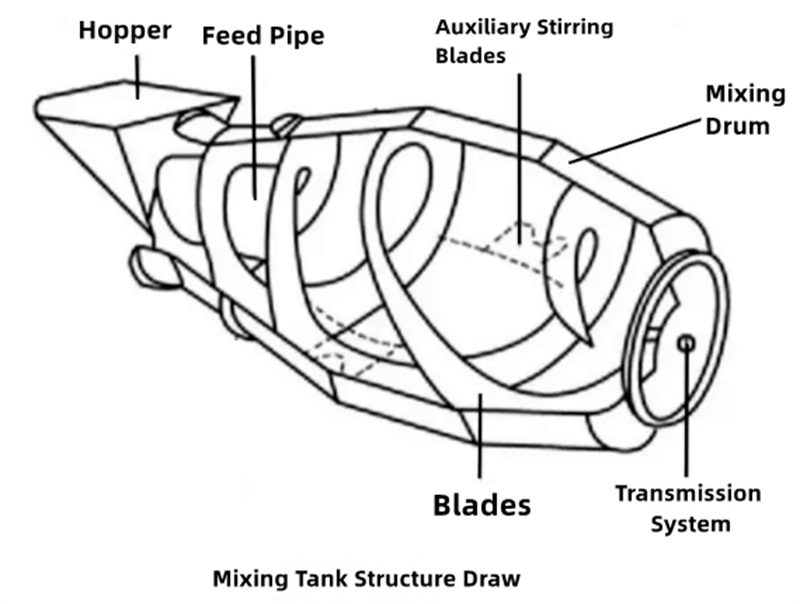 Жүк машинасының араластырғышының негізгі жұмыс принципі - қуат беру және барабанмен араластыру.