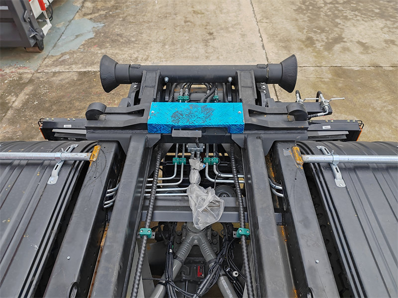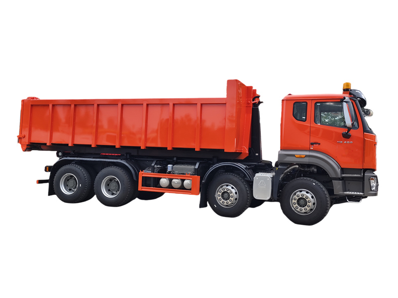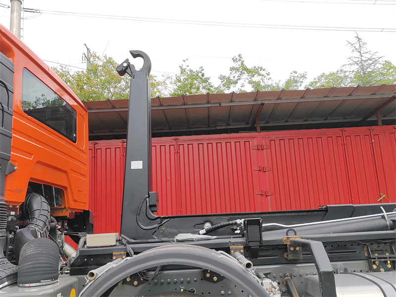 HW76 cabin, 6×6, 25 ton hook arm is optionalHOWO 20 тонналық ілмек көтергіш қоқыс таситын жүк көлігі – қоқыс контейнерлерін өздігінен автоматты түрде тиеуге, түсіруге және өздігінен тастауға мүмкіндік беретін гидравликалық ілмек жүйесімен жабдықталған, ауыр жүк көлігінің шассиіне негізделген үлкен санитарлық көлік. HOWO NX 8×4 шассиінде жасалған және 400 ат күші бар Weichai қозғалтқышымен жұмыс істейтін оның жалпы салмағы 31 000 кг және 15-20 текше метрлік қоқыс контейнерлерін өңдеуге арналған. Гидравликалық механизмдер арқылы басқарылатын 20 тонналық негізгі ілмек жүйесі бір операциялық циклді 45 секундтан аз уақыт ішінде аяқтайды, бұл қоқысты тасымалдау және көп контейнерлі циклдік тасымалдау сценарийлерінде айтарлықтай тиімділік артықшылықтарын көрсетеді.