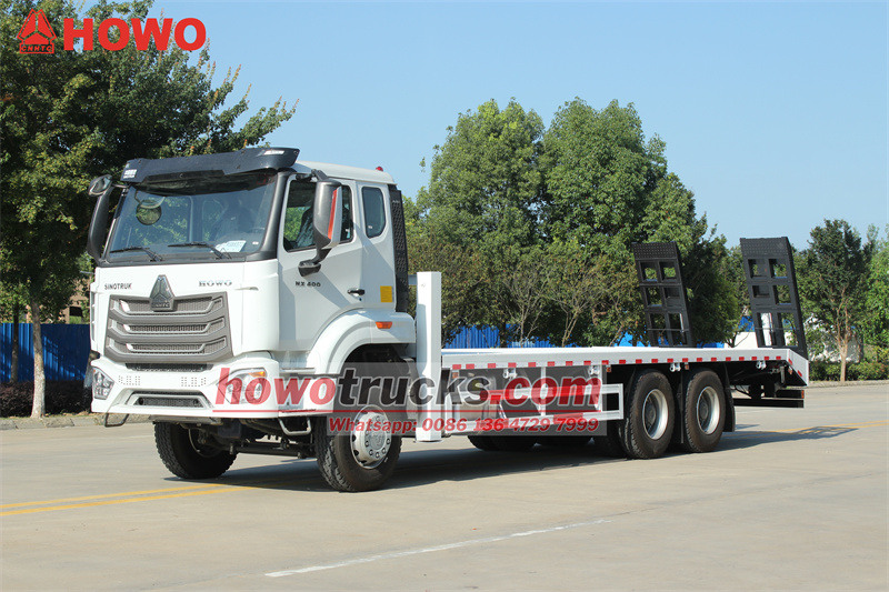 18000(2 axles)The HOWO NX 20 тонналық өздігінен тиегіш жүк көлігі ауыр техниканы тасымалдауға арналған мамандандырылған көлік. Арнайы үстіңгі құрылыммен және гидравликалық басқару жүйесімен жабдықталған, ол жылдам тиеу-түсіру және тиімді тасымалдауды қамтамасыз етеді. 400 ат күші бар Weichai қозғалтқышымен және Sinotruk 10 жылдамдықты беріліс қорабымен жұмыс істейтін ол қуатты және сенімді қуатқа ие. Оның үстіңгі құрылымы ерекше жүк көтеру қабілетін қамтамасыз ететін 7,5 метр ұзындықтағы, 8 мм қалыңдықтағы торлы болат пластинадан тұрады. Негізгі ерекшеліктеріне 45 метрлік, 20 тонналық лебедка, алдыңғы гидравликалық аутриггерлер және артқы жағындағы 2,2 метрлік механикалық серіппелі пандус кіреді. Артқы гидравликалық аутриггерлер көліктің артқы жағынан орталықтан басқарылады, бұл жоғары пайдалану тиімділігін қамтамасыз етеді.