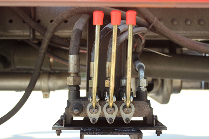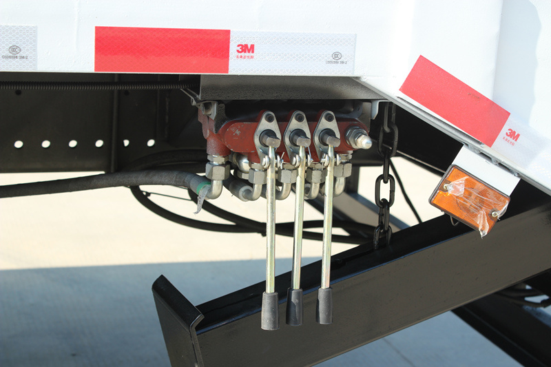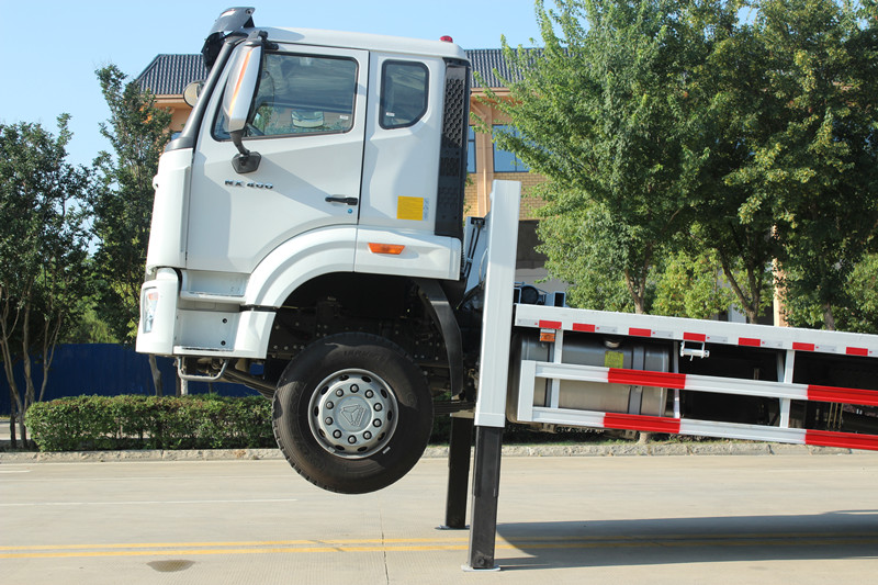 ◇Гидравликалық күшейткіштер: Көлік алдыңғы жағында екі үлкен сыйымдылықты гидравликалық аутригермен жабдықталған. Олар тиеу-түсіру операциялары кезінде көліктің алдыңғы жағын тұрақты тірекпен қамтамасыз ету, көліктің алдыңғы бөлігінің еңкейіп кетуіне жол бермеу және тиеу-түсіру процесінің қауіпсіз және бірқалыпты жүруін қамтамасыз ету үшін төмендетіледі.