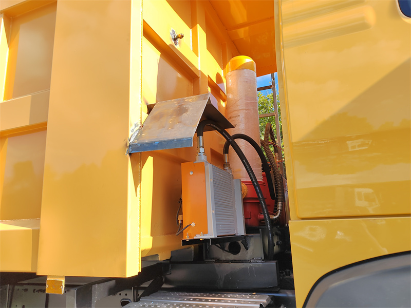 Optional front snow removal shovelThe HOWO TX құм тұзы қосылған қар ерігеннен қорғайтын төсегіш - толық самосвалға орнатылған қар еріген су шашқышы және алдыңғы жағында орнатылған қар тазалағыш щеткасы бар қар тазалайтын көлік. Қуатты Sinotruk HOWO шассиіне негізделген бұл көліктің алдыңғы жағында үлкен, гидравликалық жетекті қар тазалайтын ролик щеткасы бар, ол жолдан қарды тез тазартады. Артқы самосвалда 2-12 метрге дейін реттелетін тарату ені бар және басқарылатын таратуы бар спиральды конвейерлік жүйені пайдаланатын 10 текше метрлік қар еріген су шашу жүйесі бар. ±3% дәлдік. Бұл көп функциялы көлік қарды тазалау және еріген қарды жағу мүмкіндіктерін біріктіреді, бұл қалалық магистральдық жолдар мен тас жолдардағы қарды тазалау жұмыстарының тиімділігі мен жалпы тиімділігін айтарлықтай арттырады.