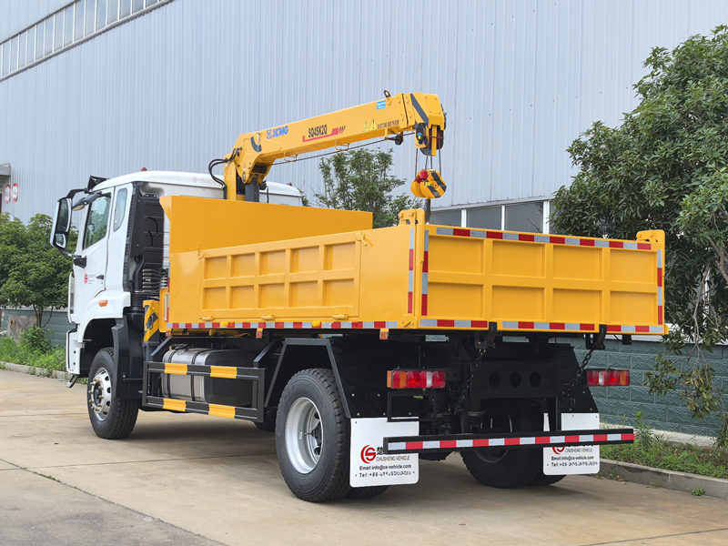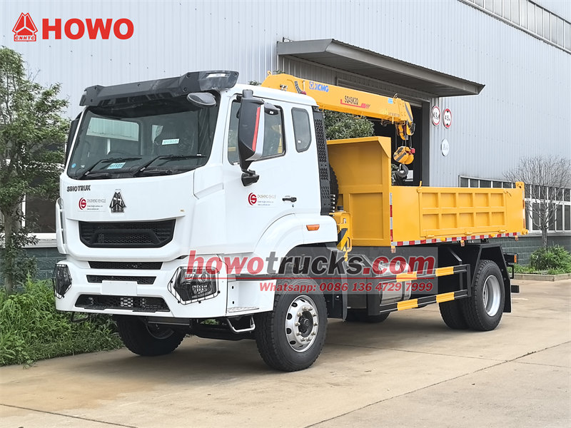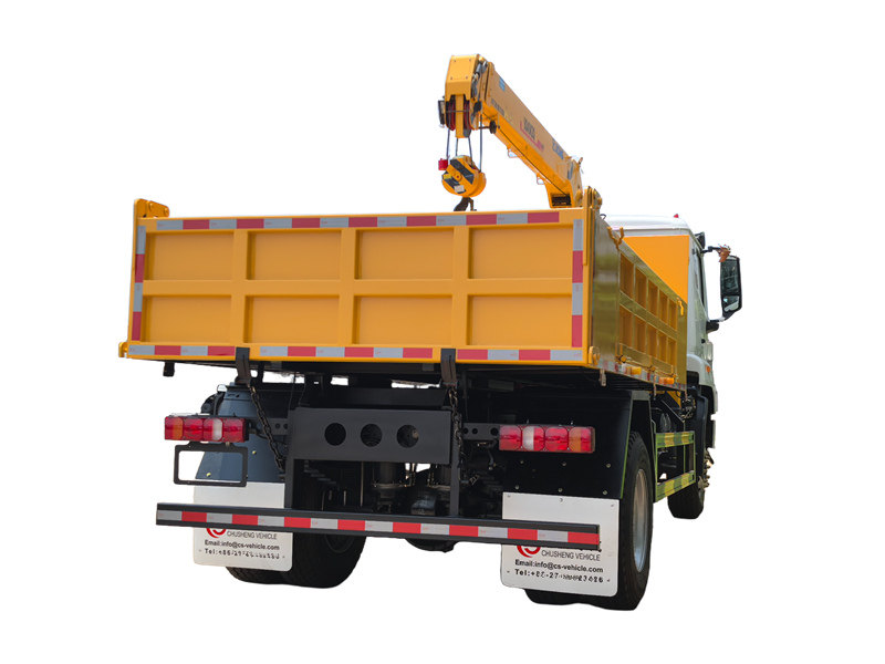 SINOTRUK HOWO самосвалына орнатылған краны - көтеру және өздігінен түсіру функцияларын біріктіретін әмбебап инженерлік көлік. Жоғары беріктігі бар U-тәрізді жебемен және жүк жәшігін көтеру жүйесімен жабдықталған ол 360° айналатын көтеру операцияларын, сондай-ақ материалдарды өздігінен түсіруді орындай алады. Ең жоғары көтеру сыйымдылығы 4 тонна және ең жоғары көтеру биіктігі 10 метр болғандықтан, ол құрылыс алаңдары мен қоймалар сияқты әртүрлі жағдайларға жарамды. Шамадан тыс жүктемеден қорғау және кең ауқымды аутриггерлермен жасалған, ол қауіпсіз және тиімді жұмыс істеуді қамтамасыз етеді.